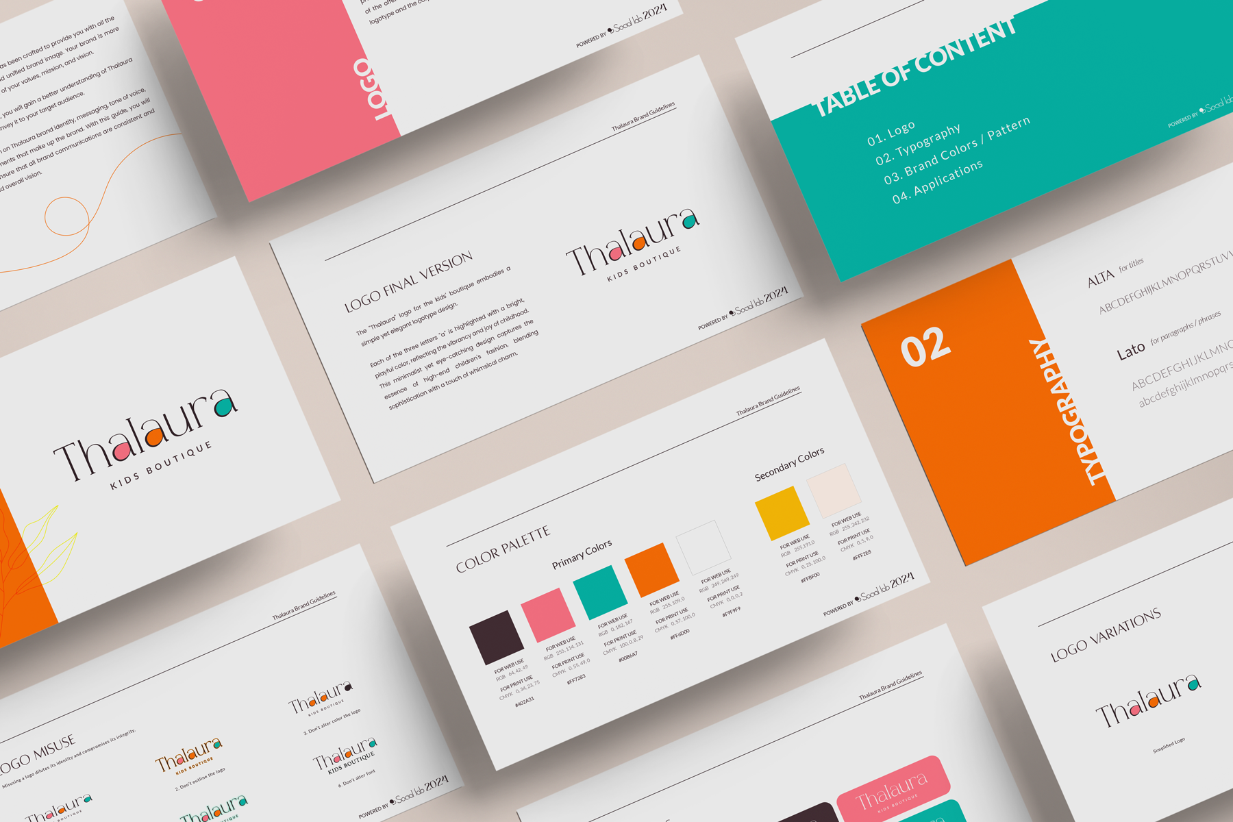 Developed the brand identity for Thalaura, a kids boutique, blending minimal sophistication with playful color accents and vibrancy.