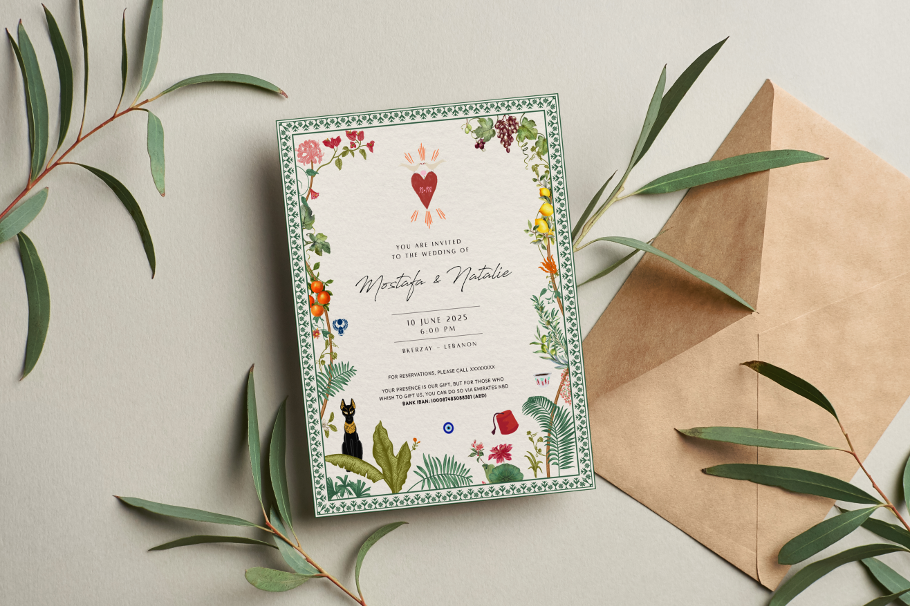 Bespoke invitations and printed pieces designed for a luxury wedding combining Lebanese and Egyptian Culture..